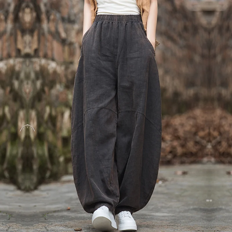 Elegant Women's Cotton Linen Baggy Cargo Pants